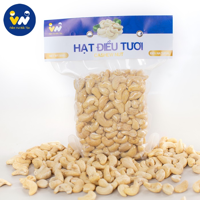 Hạt điều tươi túi W320 hút chân không VN Bình Phước 500g với quy trình chế biến khép kín nhằm đảm bảo tiêu chuẩn an toàn vệ sinh thực phẩm, mang đến quý khách hàng những sản phẩm hạt điều thơm ngon, chất lượng.