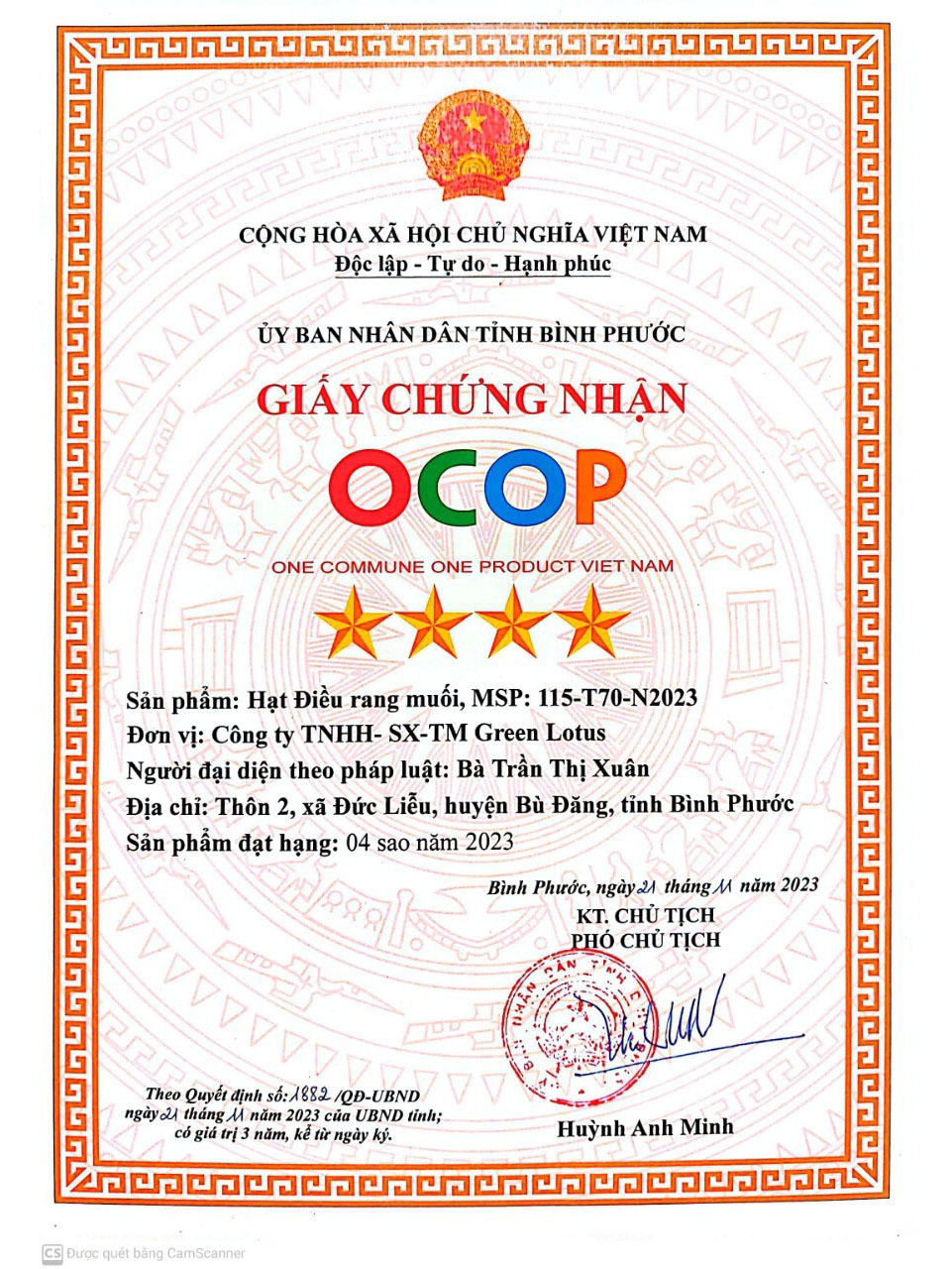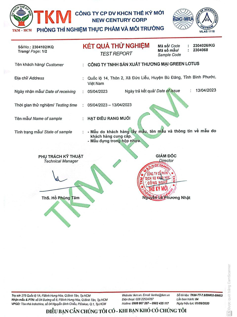 Giấy chứng nhận kiểm nghiệm Hạt điều VN